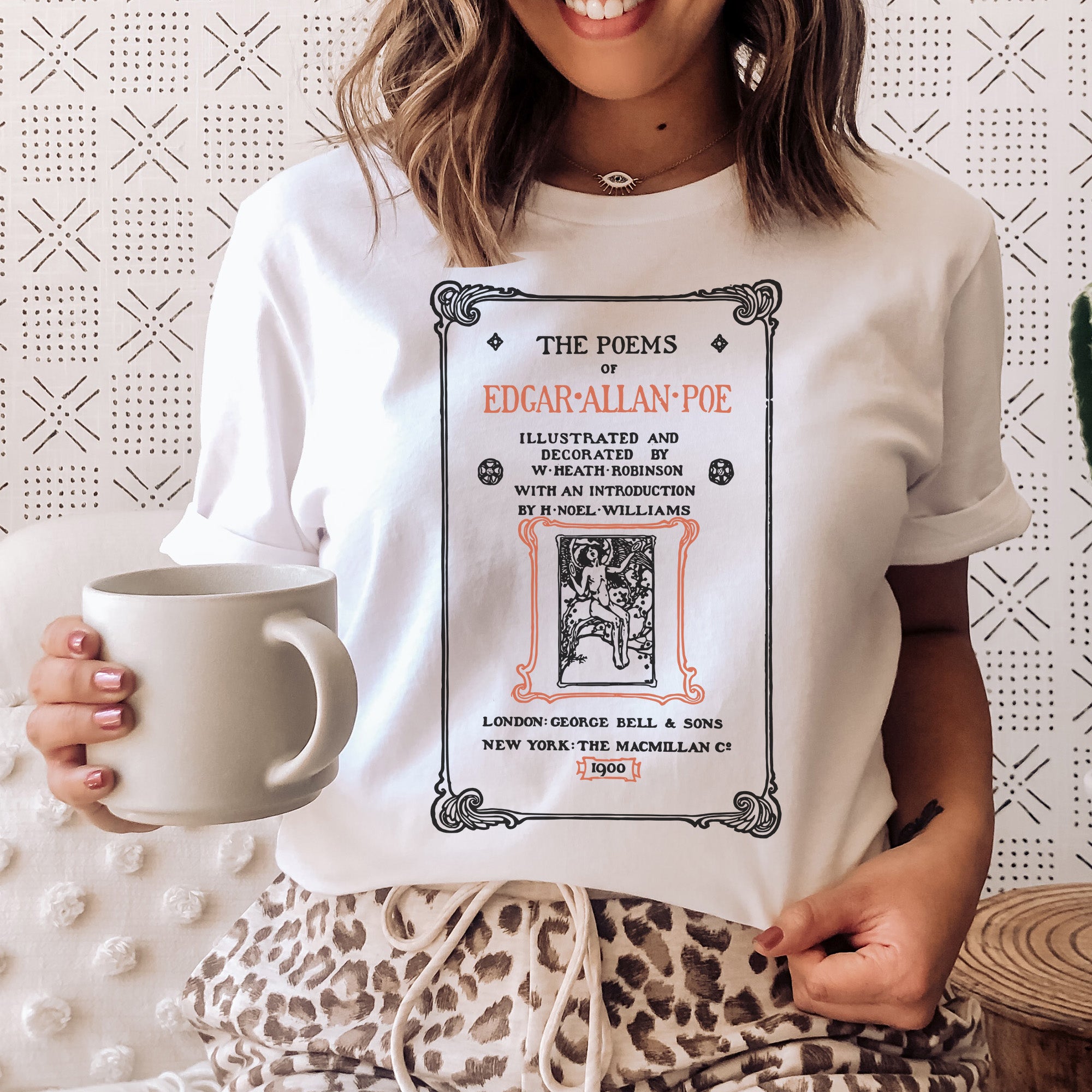This Edgar Allan Poe bookish shirt features the iconic first page of the first English edition of the poem The Raven. The book is now in the public domain.