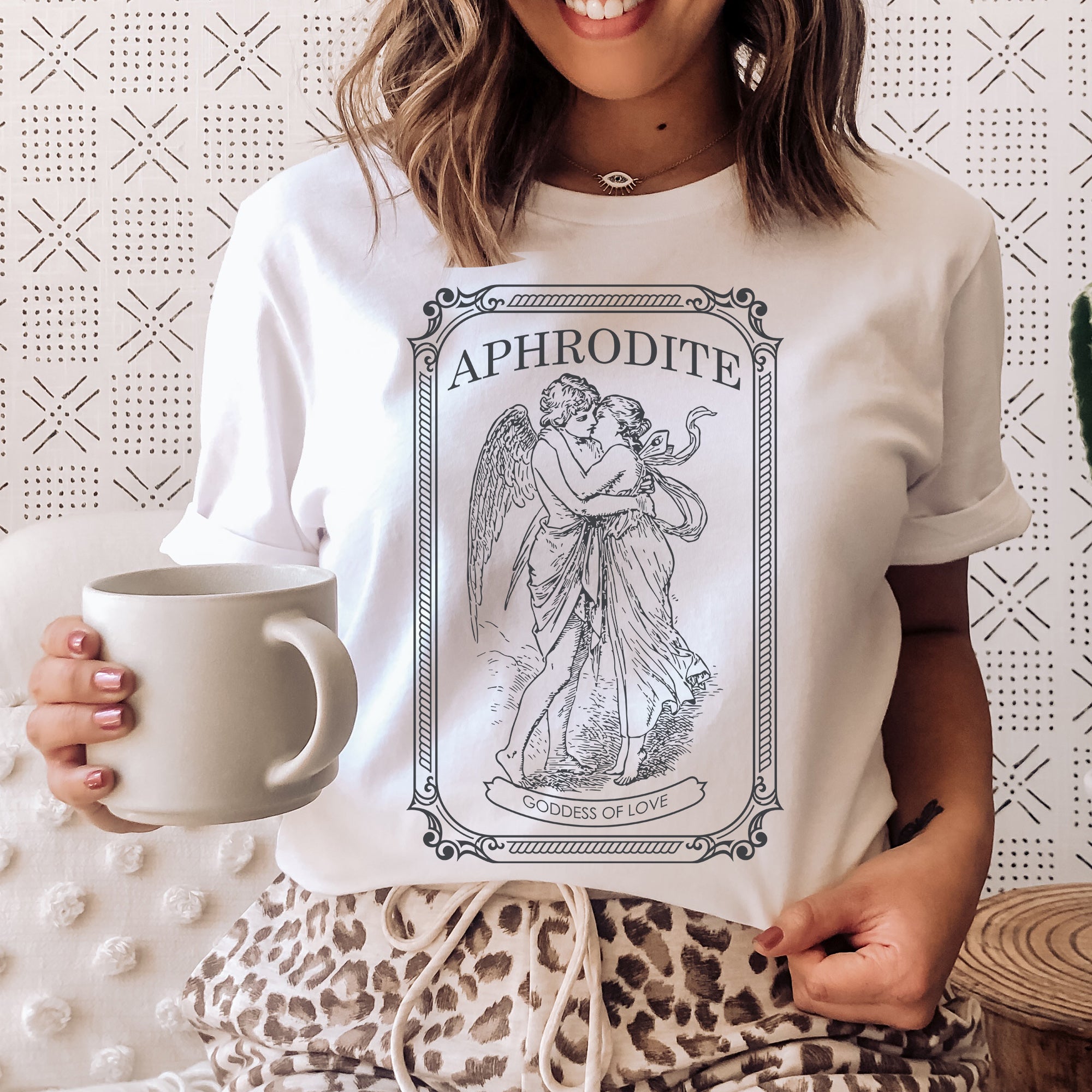 Aphrodite Greek Goddess bookish shirt is the perfect gift idea for greek mythology lovers, book nerds, bookworms, literature teachers, librarians, readers, and writers.