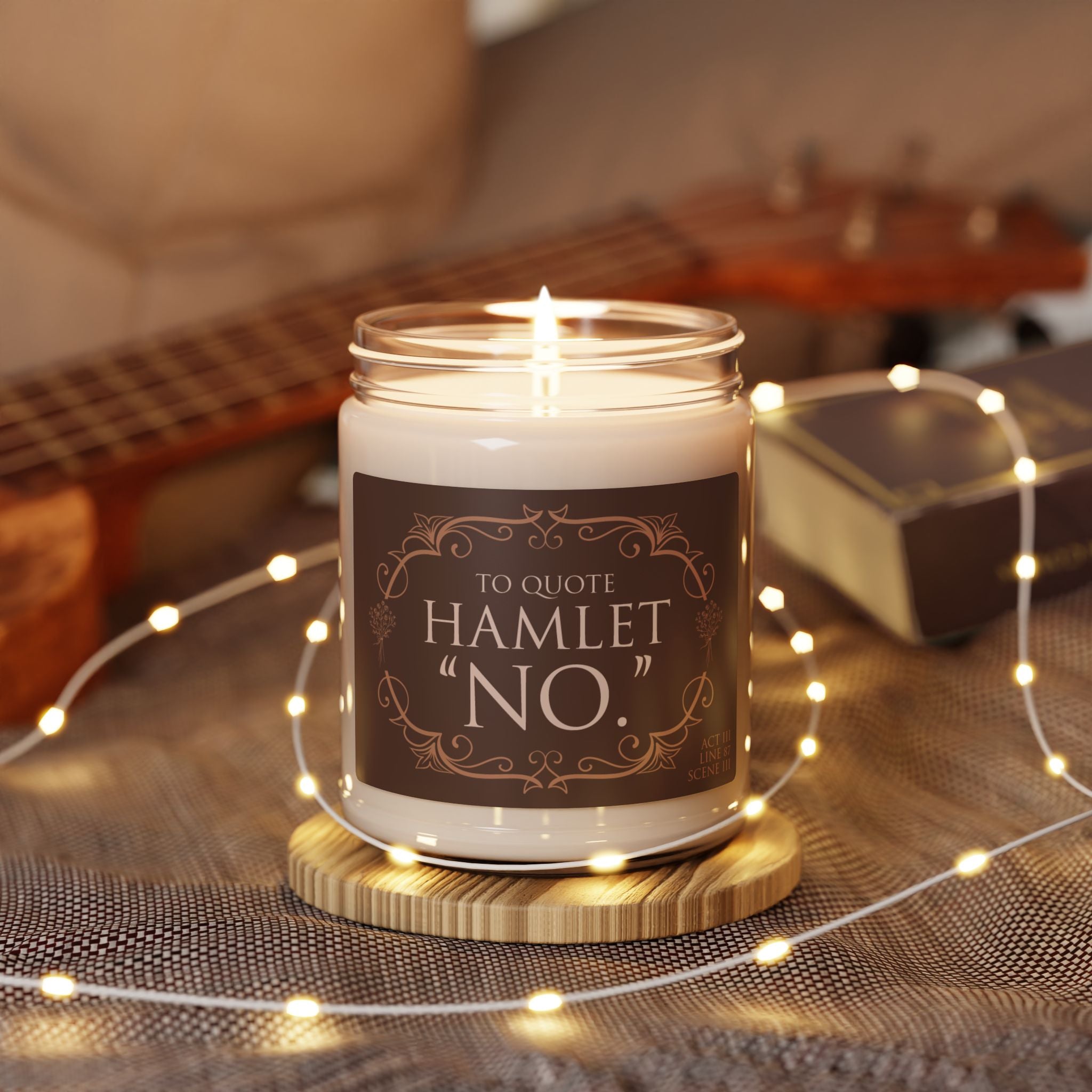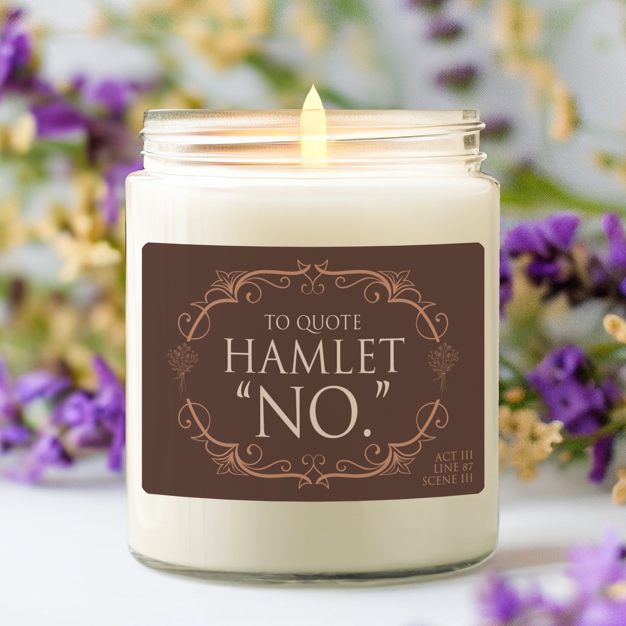 This scented soy candle features a funny quote from Shakespeare's Hamlet, creating a cozy and literary atmosphere in any space. Perfect for book lovers and those who enjoy unique home decor. Ideal for gifting during holidays like Christmas and birthdays!