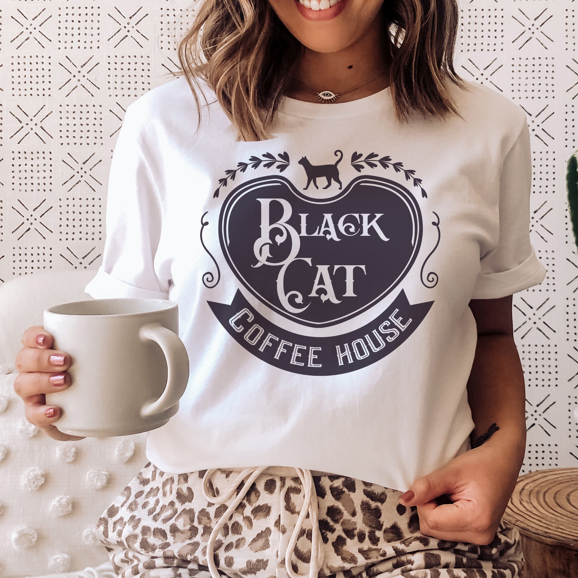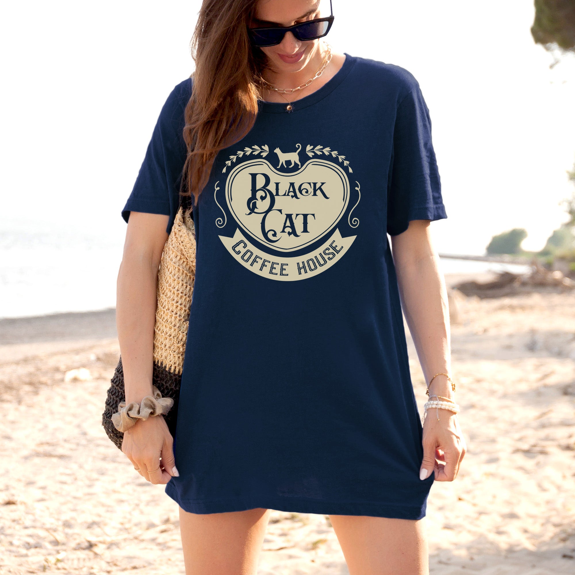 Black cat coffee house t-shirt | Bookish